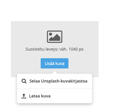 Unsplash toimii integroituna osana kuvanvalintatyökalua, joten käyttö on nopeaa ja selkeää.